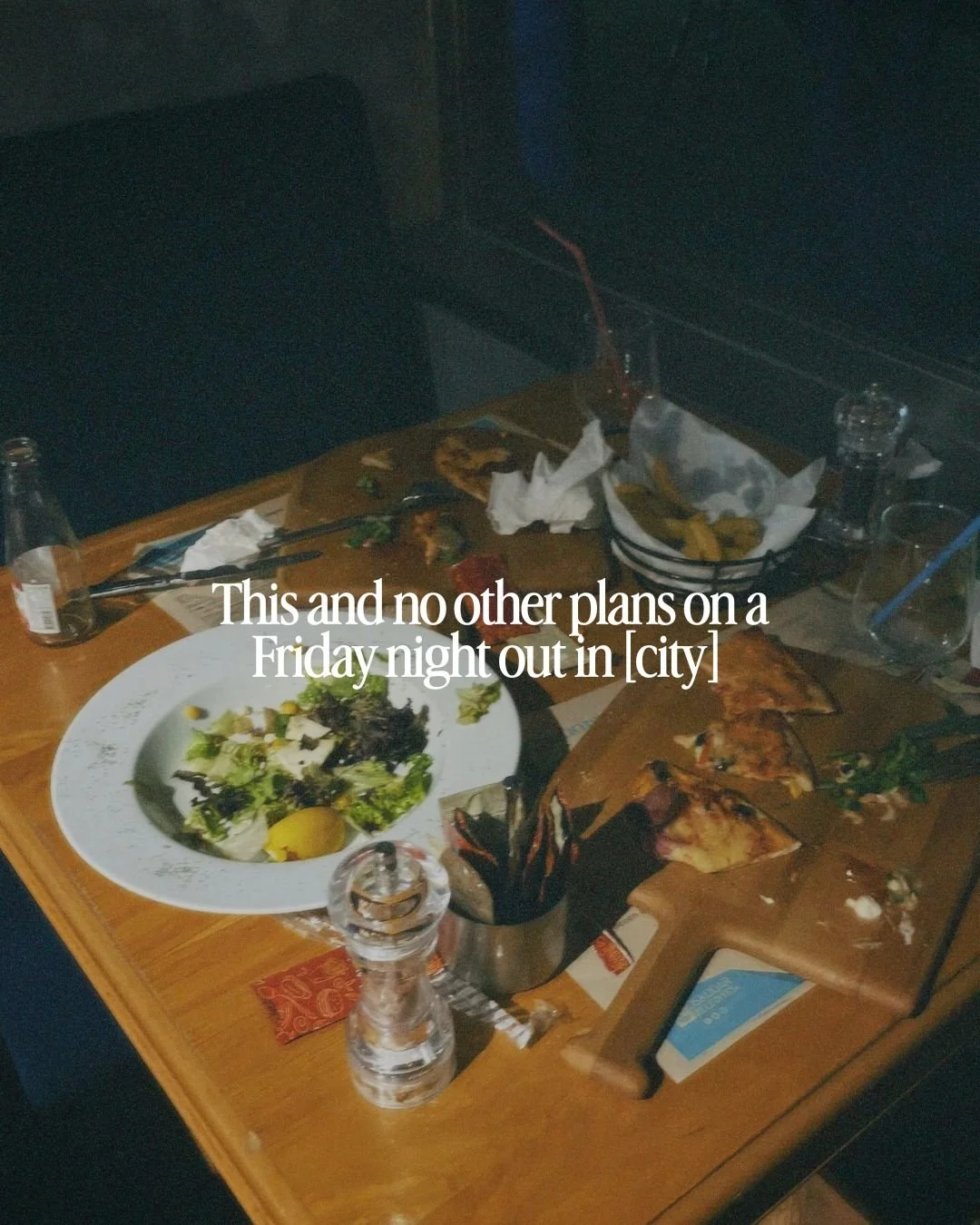 This and no other plans on a Friday night out in [city]